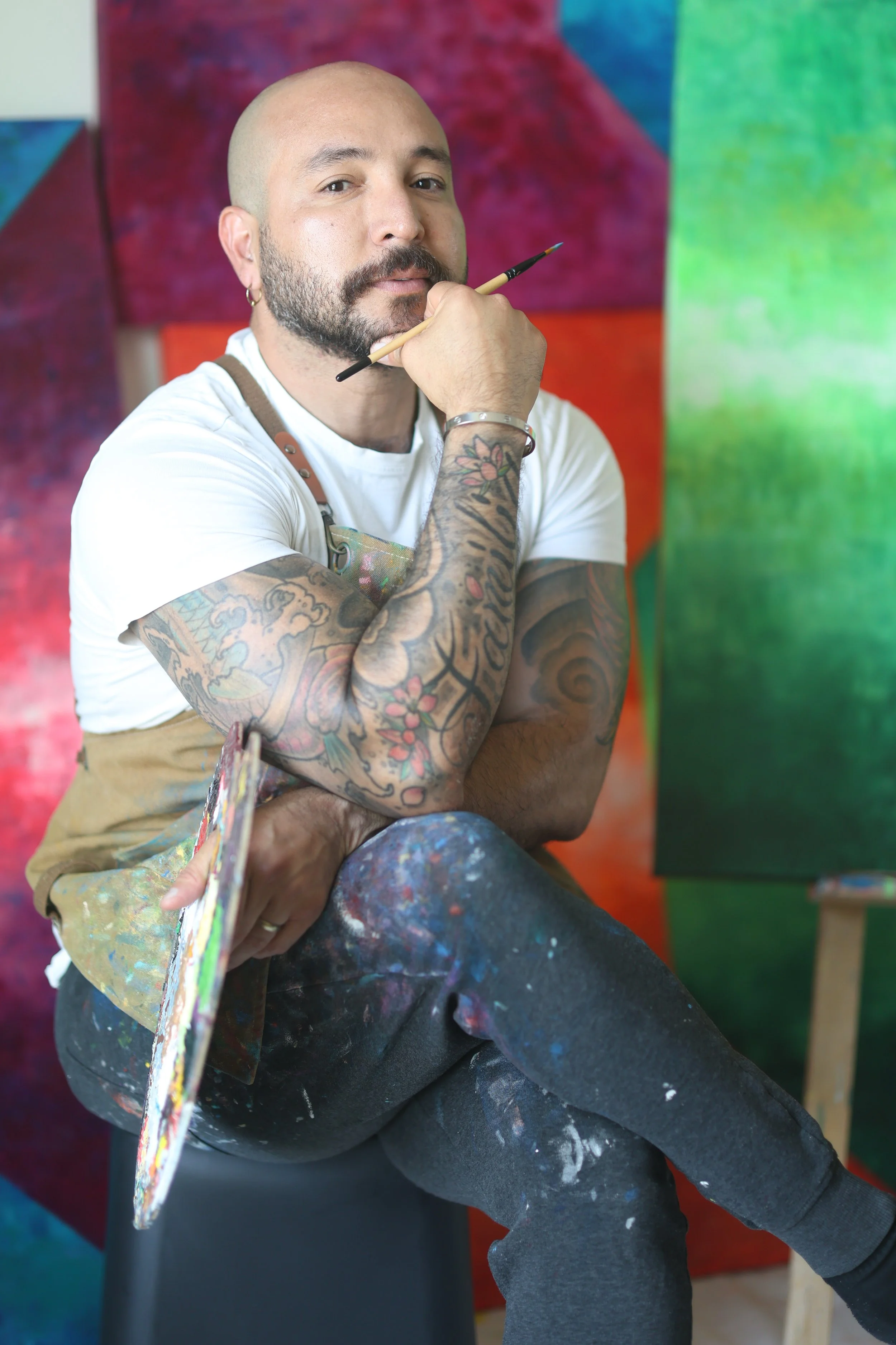 Growing up in a conservative environment with limited resources, Ruben came to view art as a means of transformation. His academic formation in linguistics continues to inform his work, shaping his approach to composition as a visual syntax. Through layered textures, controlled gesture, and dynamic color relationships, he constructs abstract compositions that translate memory, identity, and emotion into visual form.