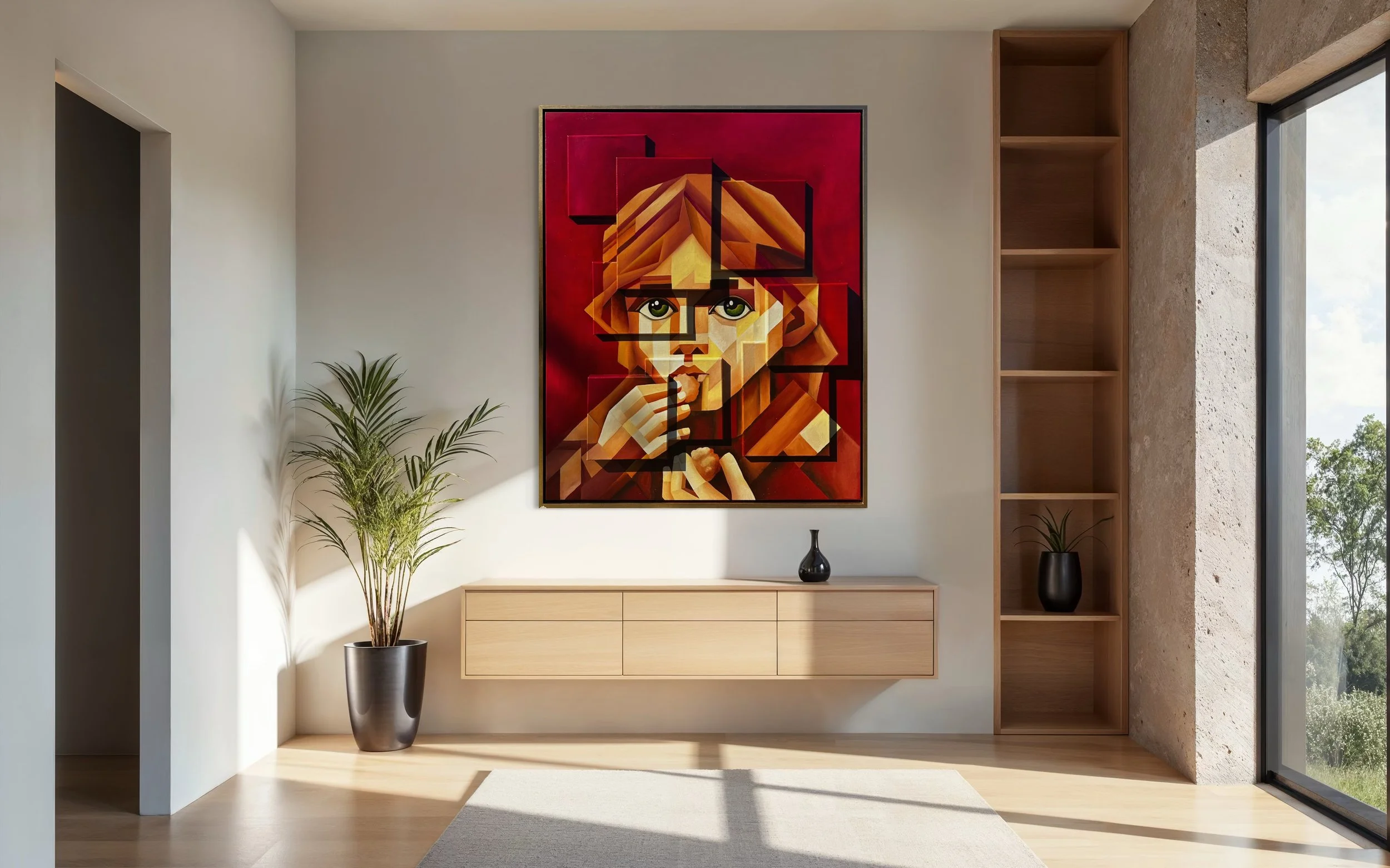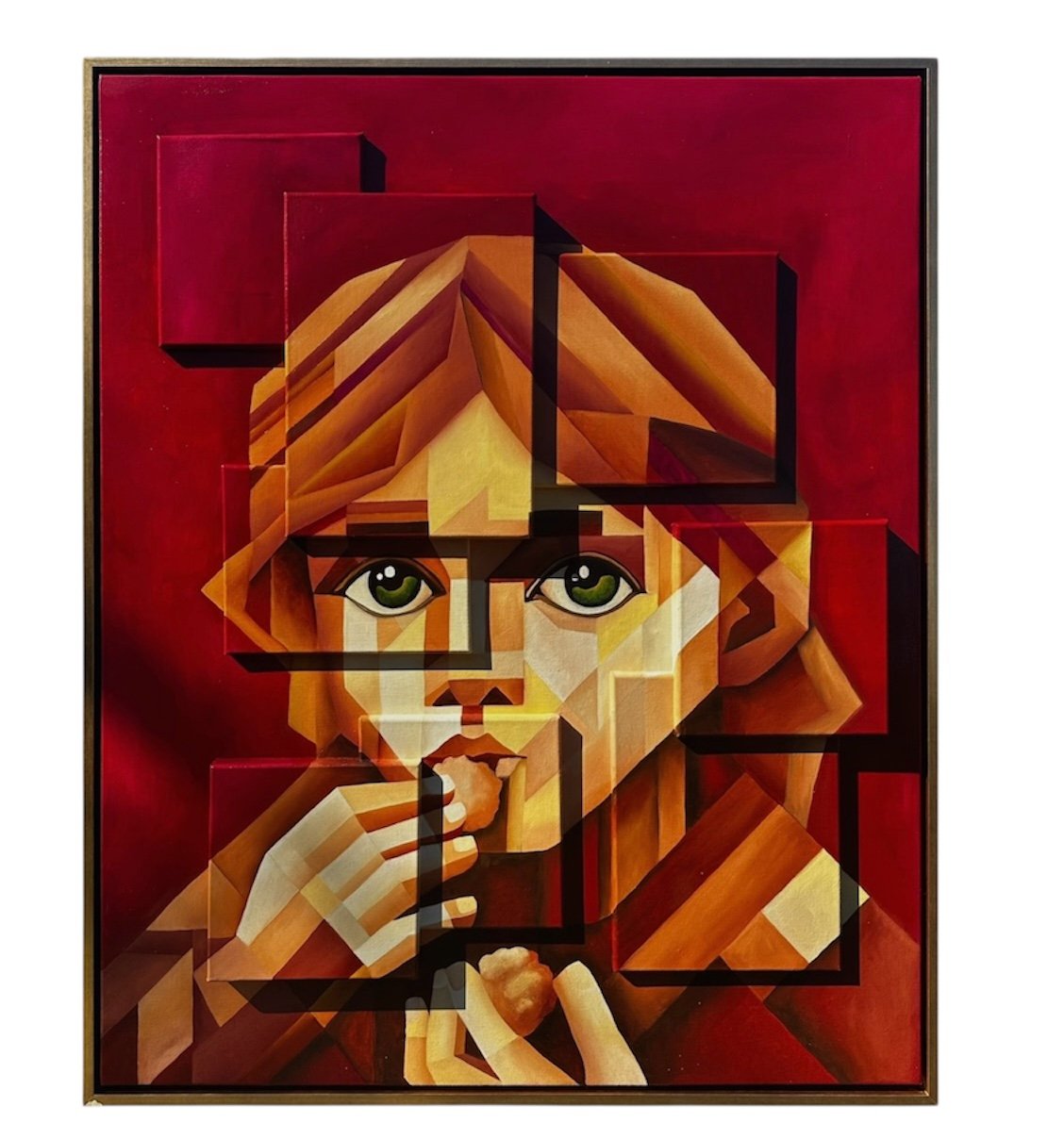 The instinct to survive by becoming part of the surroundings. It reflects how innocence learns to adapt, to hide in plain sight, when the world turns unsafe. Through layered geometry and subtle shifts of color, the piece expresses both fragility and strength, showing how children protect their light by blending with their environment. Beneath the surface, that hidden light continues to exist, patient and enduring, waiting for the moment when it can shine freely again.