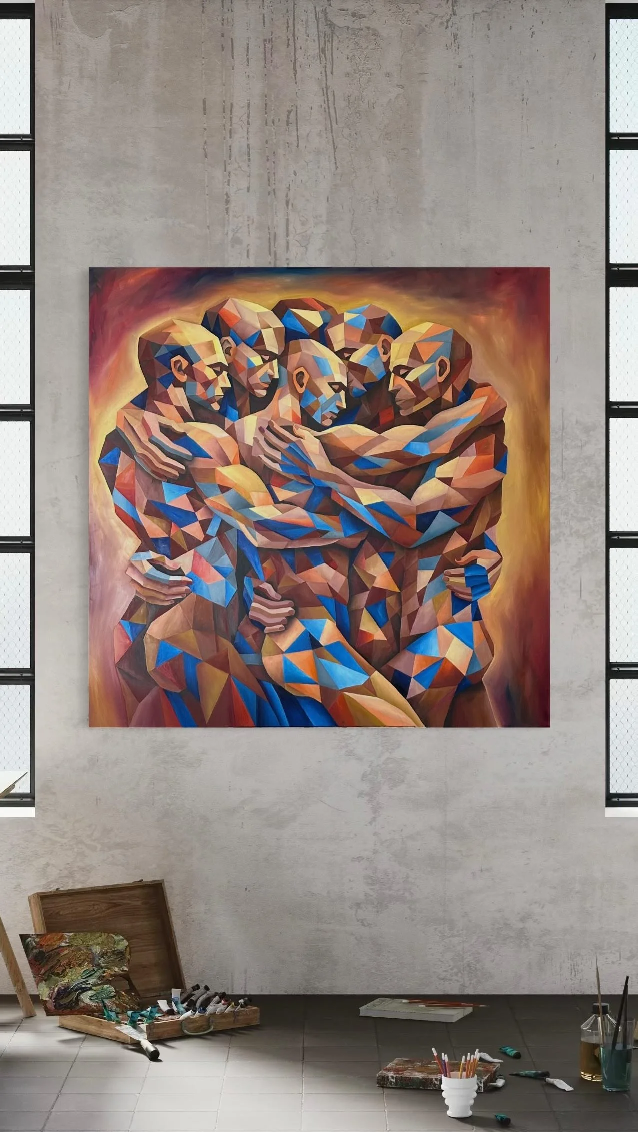 Reflecting on the quiet disconnection that defines our time, using bold color and geometric form to suggest that even in fragmentation, connection is still possible. This series is a meditation on love as a quiet force that endures beyond the noise of technology, reminding us that hope lives in the spaces where we choose to reach for one another.