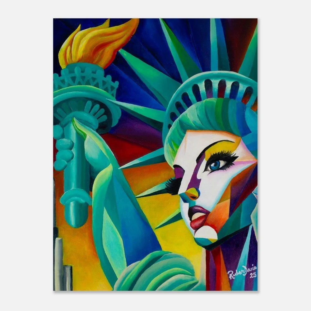 This fine art print is based on an original 12 × 16 inch oil on canvas painting by Ruben Dario and presents Miss Liberty through a contemporary, painterly lens. Freedom is approached not as a distant ideal, but as a lived and contested reality shaped by dignity, inclusion, and voices that refuse to disappear.
